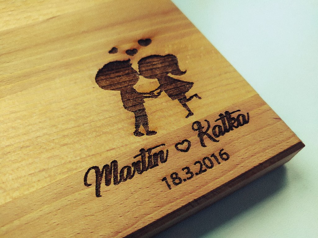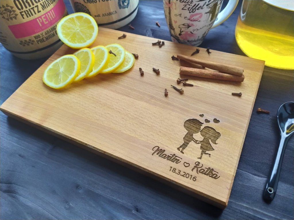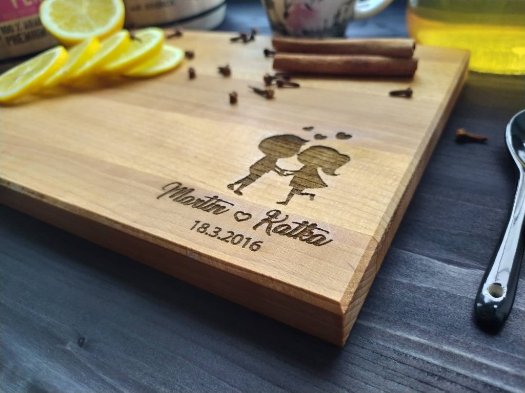 Bukové prkénko představuje praktický dárek s dotekem lásky. Do motivu si zvolíte vlastní text dle libosti.
