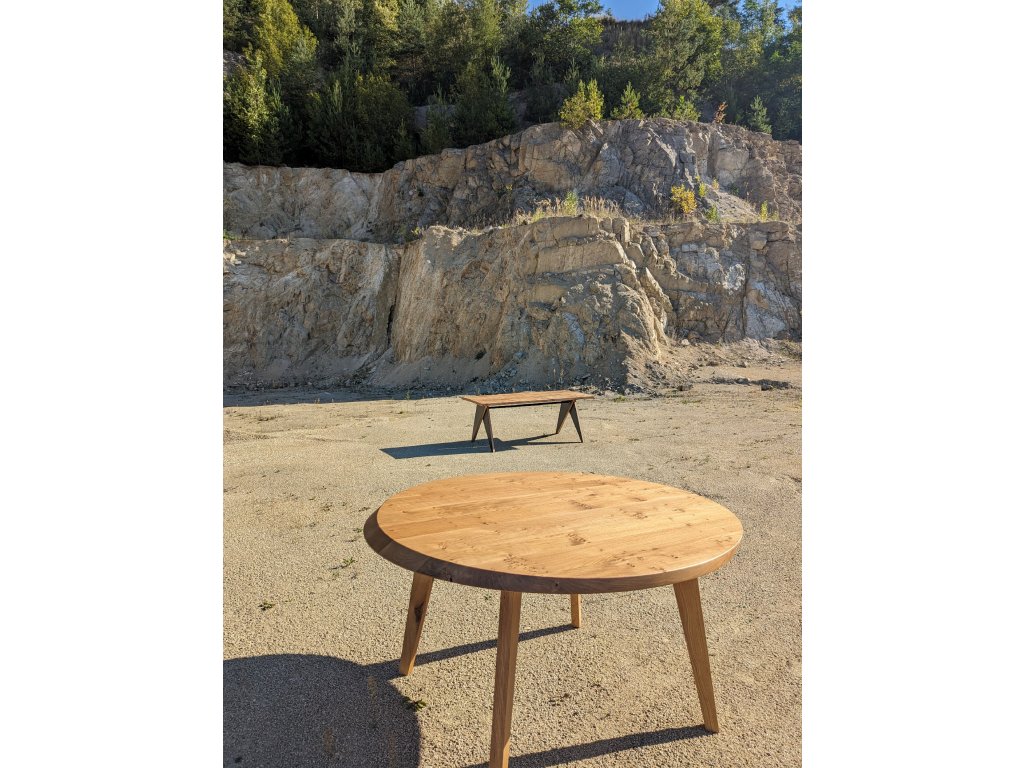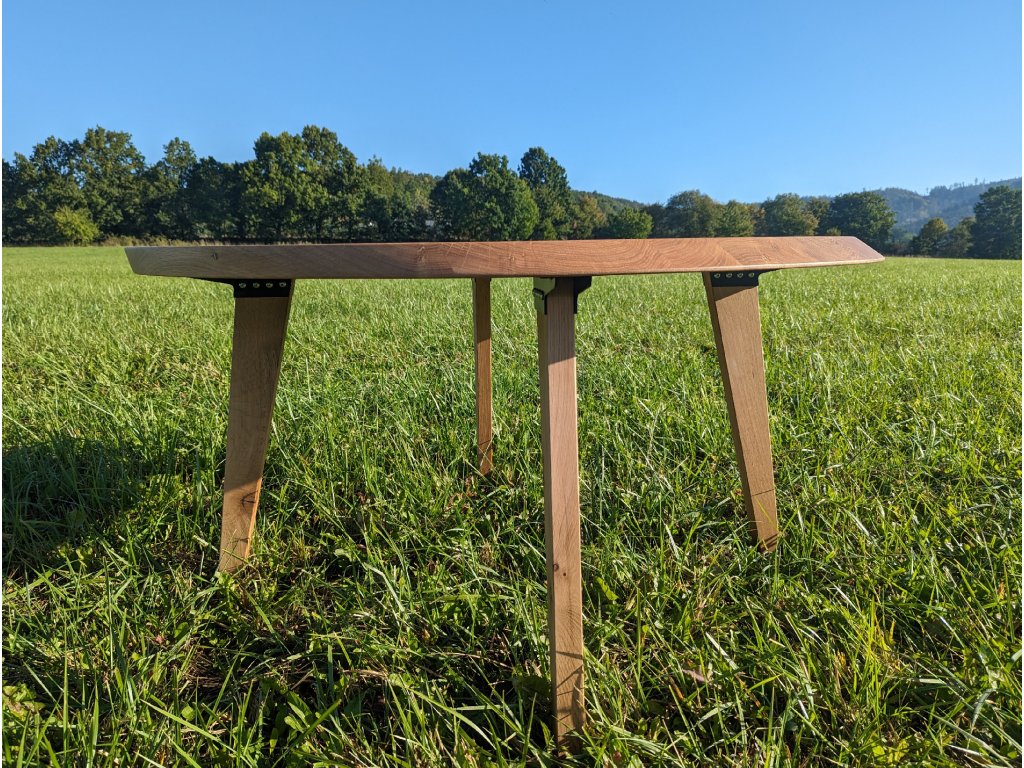 K našemu designovému jídelnímu stolu Artemis Vám nyní nově nabízíme jedinečnou možnost dokoupit také jeho zmenšenou verzi. Jedná se o elegantní konferenční stolek, který je navržen jako jeho pomyslný „malý bratříček“. Tento elegantní konferenční stolek s rozměry přibližně 1250x650x450 mm skvěle doplní váš interiér. Konferenční stolek pro vás vyrobíme ze stejné fošny, jako stolovou desku vašeho jídelního stolu a tento fakt zajistí to, že oba stoly budou mít stejný odstín i stejnou strukturu povrchu dřeva.