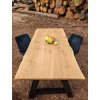 Nadčasový jídelní stůl dodá vašemu interiéru šarm a sofistikovaný styl. Originální stolová deska do vašeho prostoru přinese dotek a přírody. Jeho kovová podnož vytváří impozantní kontrast s přírodní dubovou deskou a zajišťuje jeho dokonalou stabilitu. Tento designový jídelní stůl je skvělou volbou pro vaše rodinná setkání a večeře s vašimi blízkými.