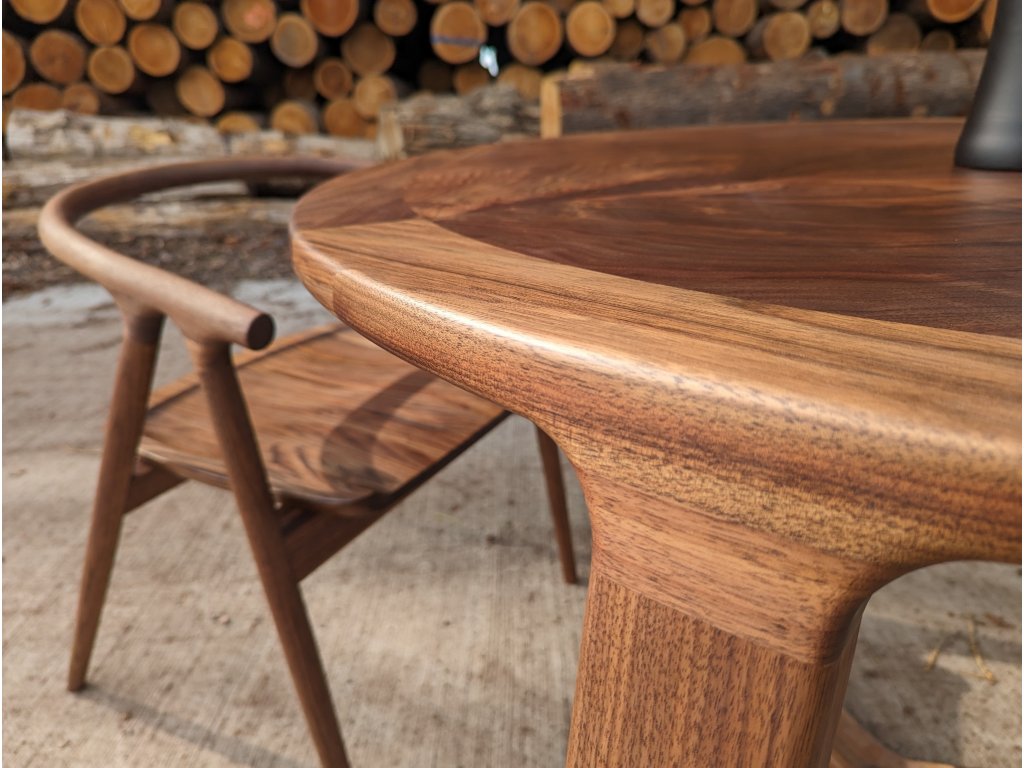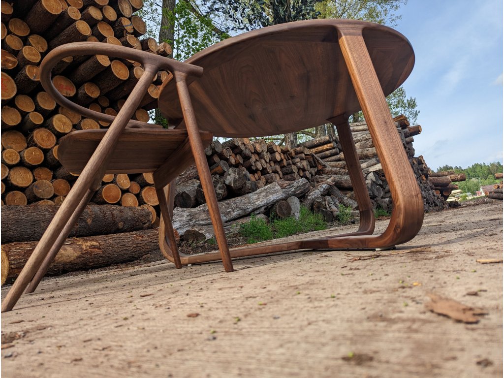 Představujeme vám naprostý unikát mezi jídelními stoly - náš jídelní stůl z ořechového masivu a ohýbaného dřeva.
