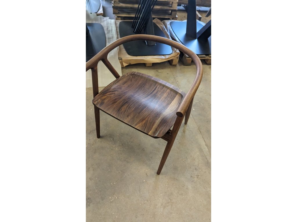 Jedinečnost této židle spočívá zejména v elegantních ohýbaných prvcích. Tato technika ohýbání dřeva patří k nejnáročnějším a vyžaduje nejen zkušenou ruku, ale i hlubokou znalost materiálu. Výsledkem je harmonický tvar, který nejen skvěle vypadá, ale přináší i vysoký komfort při sezení. Organická linie područek plynule navazuje na zadní nohy, čímž vzniká kompaktní a stabilní konstrukce.