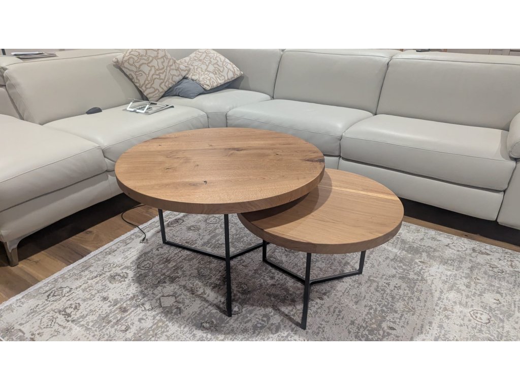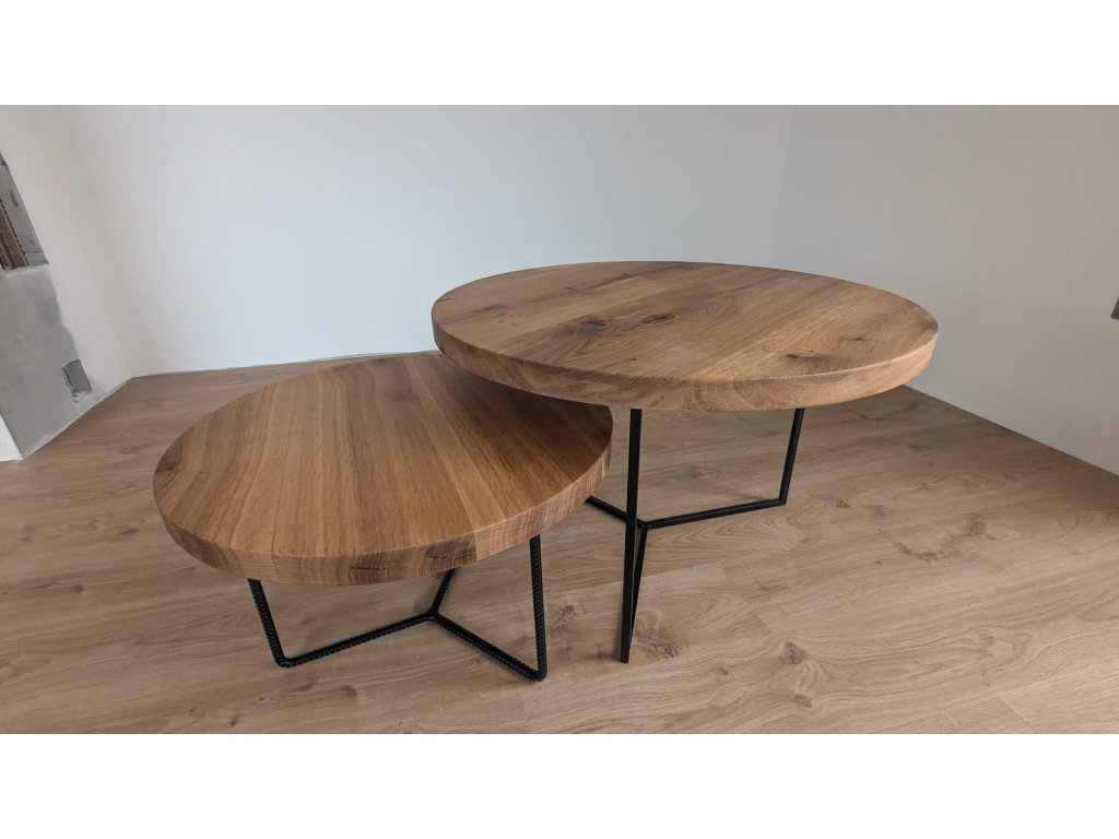 Nadčasová a elegantní sada konferenčních stolků s názvem TWObro. Jedná se o dva konferenční stolky s kulatou stolovou deskou z dubového řeziva nejvyšší kvality. Stolovou desku vkusně doplňuje elegantní kovová podnož v industriálním designu. Sada se skládá ze stolku BIGbro a SMALLbro. Oba kousky se skvěle doplňují a lze je do sebe částečně zasunout. Záleží jen na vás, kde a jak si je umístíte.