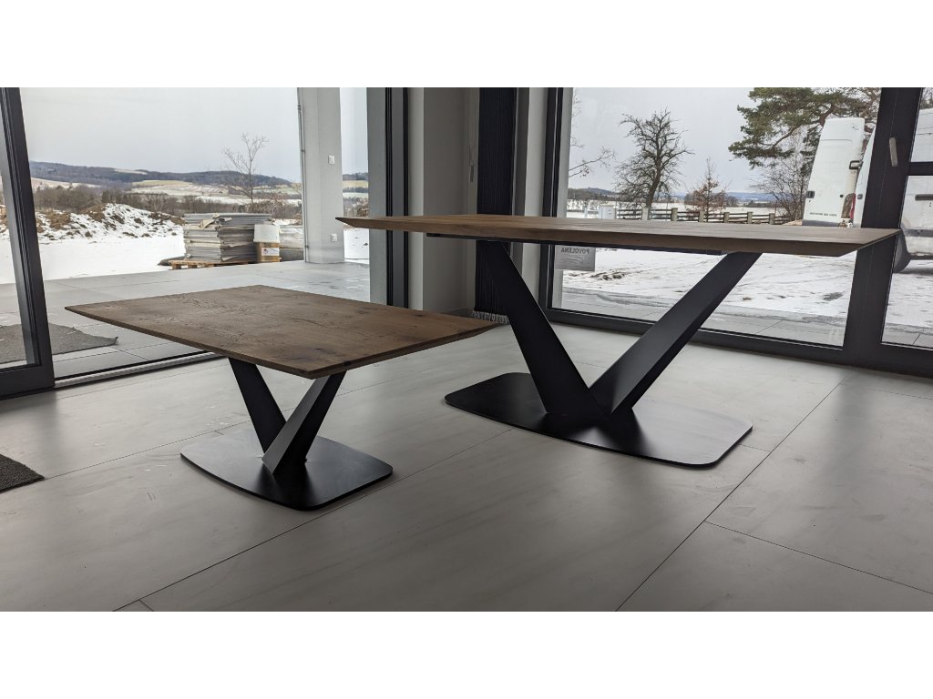 Kovová podnož kopíruje podnož jídelního stolu a i u ní můžete zvolit vámi preferovanou barvu. Na výběr máte bílý a černý práškový lak, či odstín rzi. Po domluvě lze zvolit i jiný odstín, stačí zvolit variantu "jiná povrchová úprava". Můžete si díky tomu vzhled stolku upravit přesně podle vašich představ.