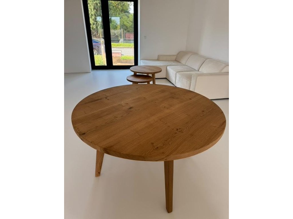 Nadčasově elegantní jídelní stůl s kulatou stolovou deskou z dubového masivu vnese do vašeho interiéru šarm a styl. Kvalitní dubové řezivo desky...