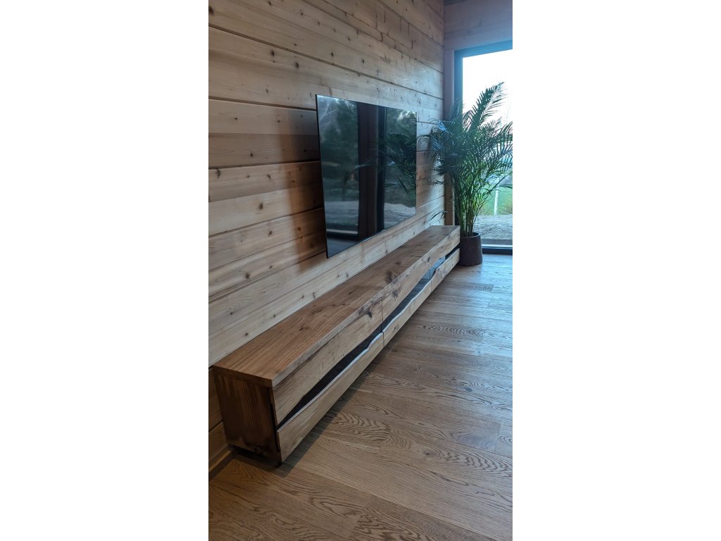 Na produktové fotografii vidíte modelové provedení této komody. Pokud jde o její rozměry, standardní hloubka je 400 mm, modelová výška činí přibližně 350 mm a co se týče délky, vyrobíme ji pro vás až do rozměru 4000 mm dle dispozic vašeho prostoru.