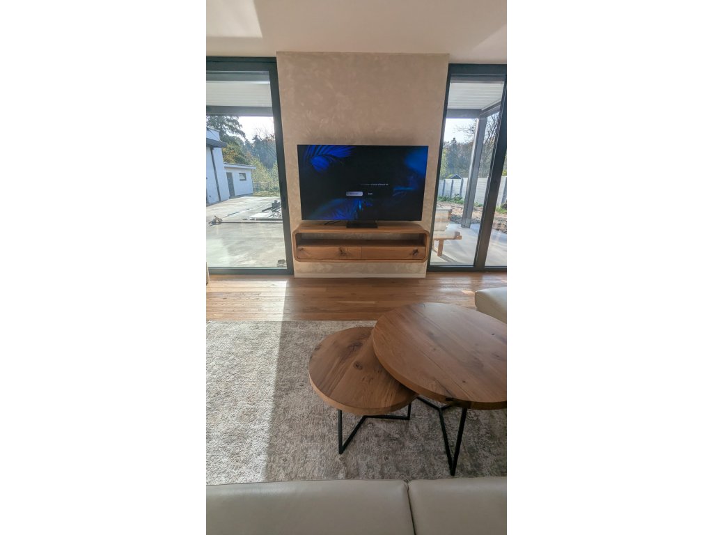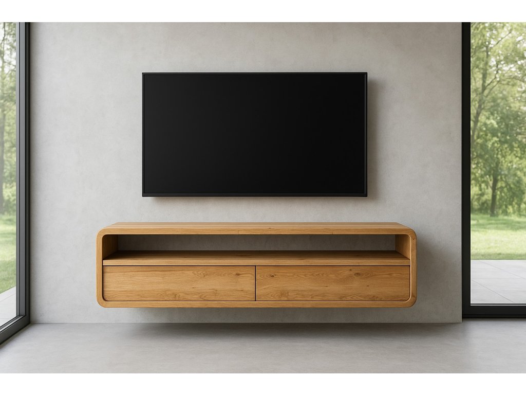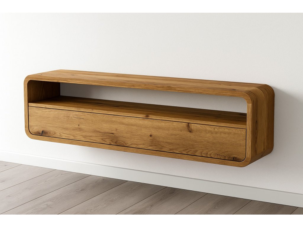 TV komoda s rádiusy je závěsný designový kus nábytku z dubového masivu, který zaujme svými organickými liniemi a jemně zaoblenými hranami. Charakteristické rádiusy vytvářejí vizuálně lehký a plynulý tvar, díky němuž komoda působí měkce, elegantně a harmonicky i v moderním interiéru.