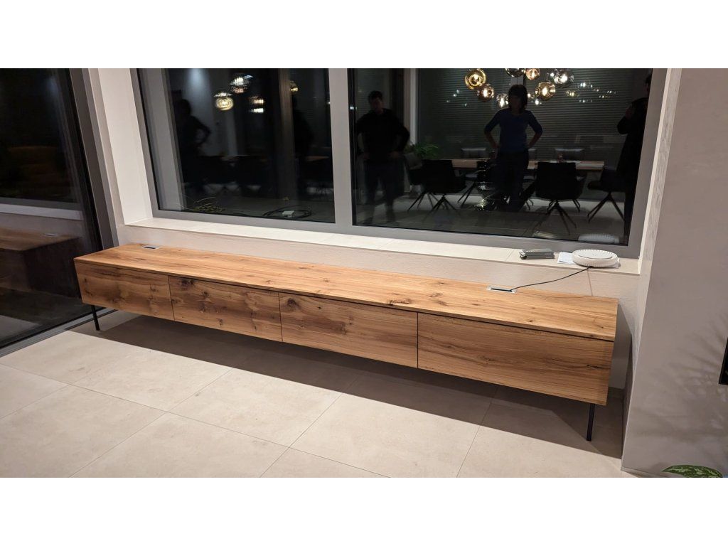 Náš designový TV stolek je vyroben z kvalitního masivu, který vyniká svou pevností, stabilitou a dlouhou životností. Přirozená kresba dřeva podtrhuje autenticitu materiálu a dodává interiéru teplo i dotek přírody. Precizní řemeslné zpracování zvýrazňuje přirozenou krásu masivu a zajišťuje vysoký standard provedení každého kusu.