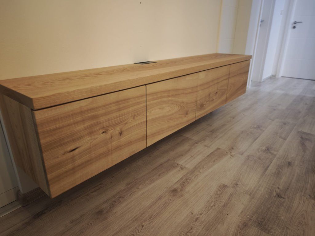 Na modelových fotografiích můžete vidět provedení z jasanu (závěsná varianta) i z dubu (stojící varianta). Dubový masiv patří mezi nejčastěji volené a zákazníky preferované materiály, nicméně na přání vám stolek vyrobíme také z jasanu či jiného druhu masivu dle individuální konzultace. Výběr materiálu vždy přizpůsobíme vašim požadavkům na vzhled, charakter i celkové ladění interiéru.
