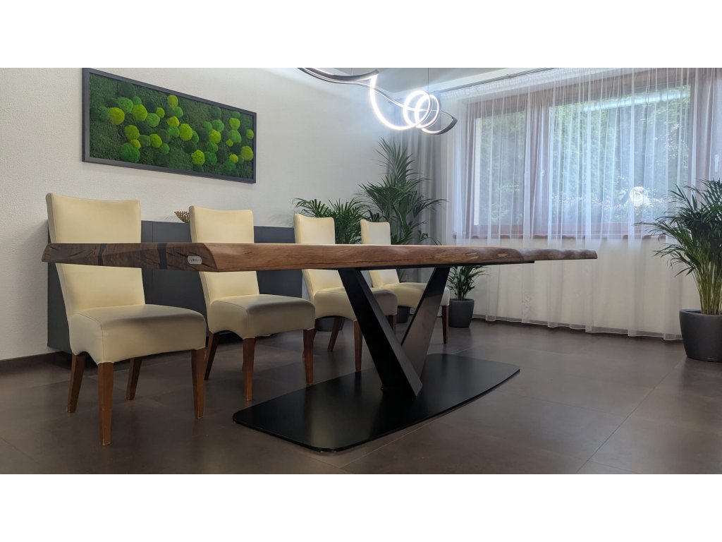 Jednou z klíčových předností naší dílny je schopnost vyrobit stůl v délce až čtyř metrů z jednoho kusu dřeva, což je v České republice zcela ojedinělé. Pro rozsáhlejší zakázky poté dokážeme připravit stoly o délce až šesti metrů, jež vznikají spojením pečlivě vybraných masivních fošen, aniž by utrpěla estetika či stabilita výsledného díla.